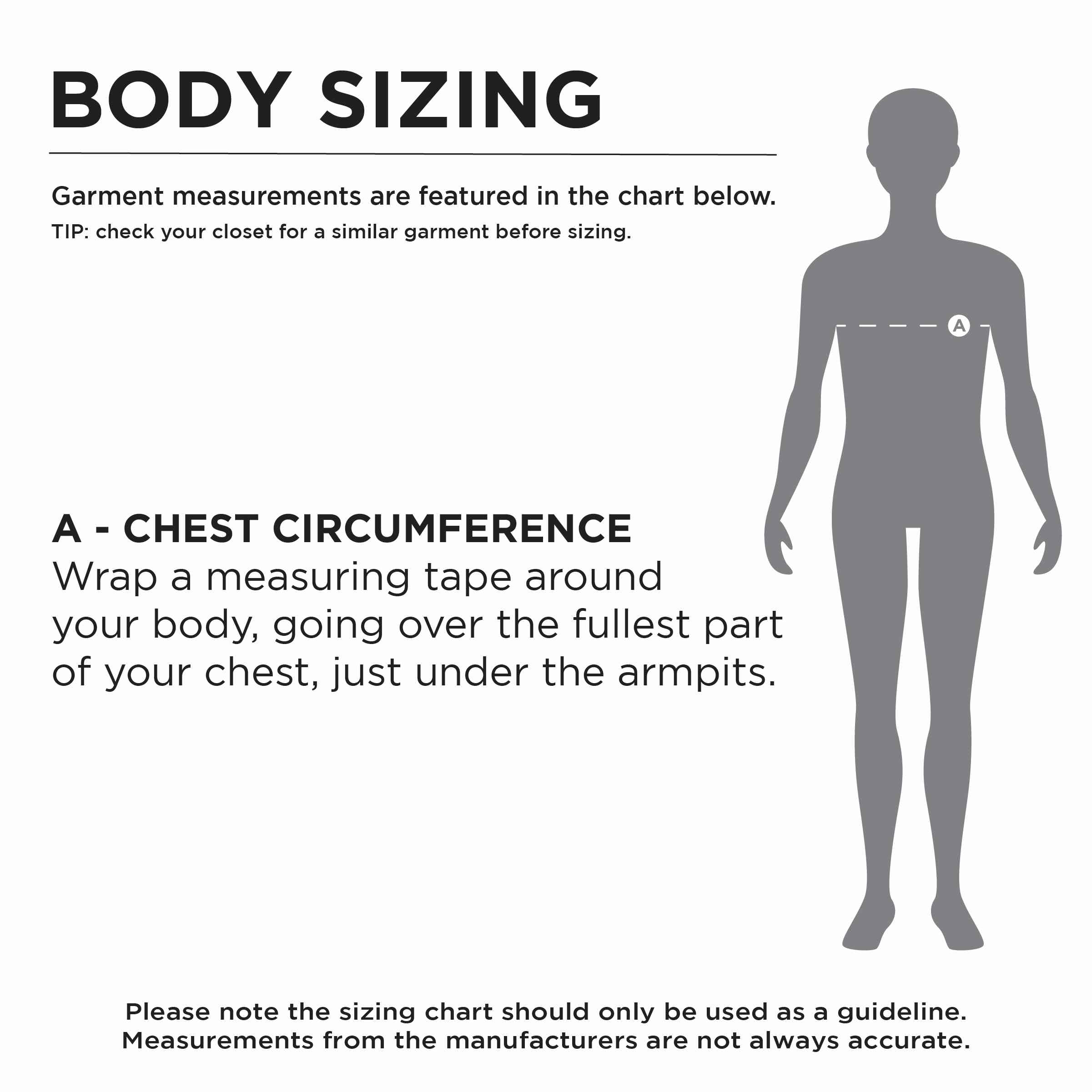 | Chest | 33"-35" | 36"-38" | 39"-41" | 42"-44" | 45"-47" | 48"-50" | 51"-53" | 54"-56" |